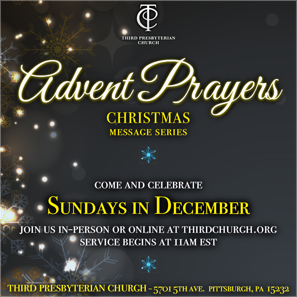Join us every Sunday, November 30 and every Sunday in December for “Advent Prayers”, our Christmas Message Series!