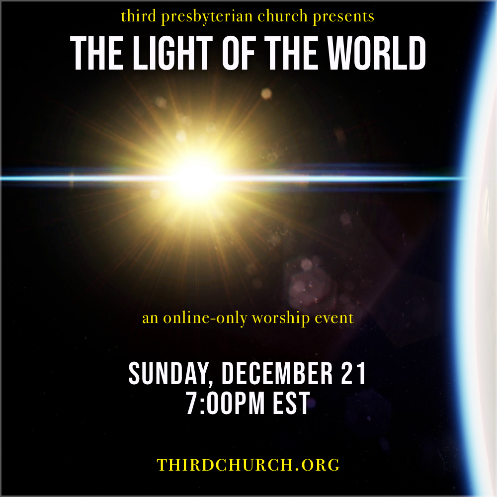 Third Church Online is proud to present “The Light of the World”, an online-only worship event on Sunday, December 21 at 7:00pm EST!
