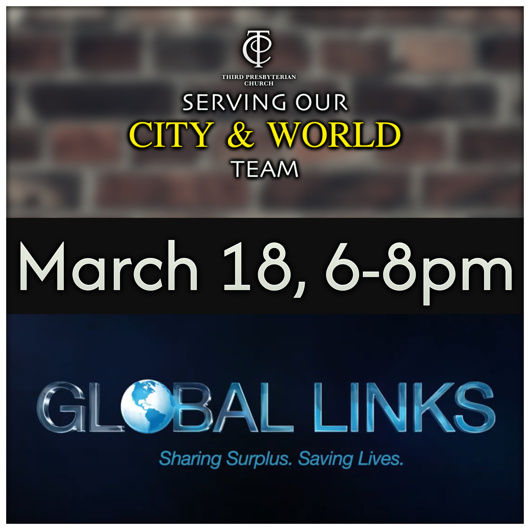Third Church’s Serving Our City and World Team is proud to announce a new serving opportunity for this Spring! Join us on Marc 18, from 6pm – 8pm as we help Global Links distribute surplus materials to those in need!